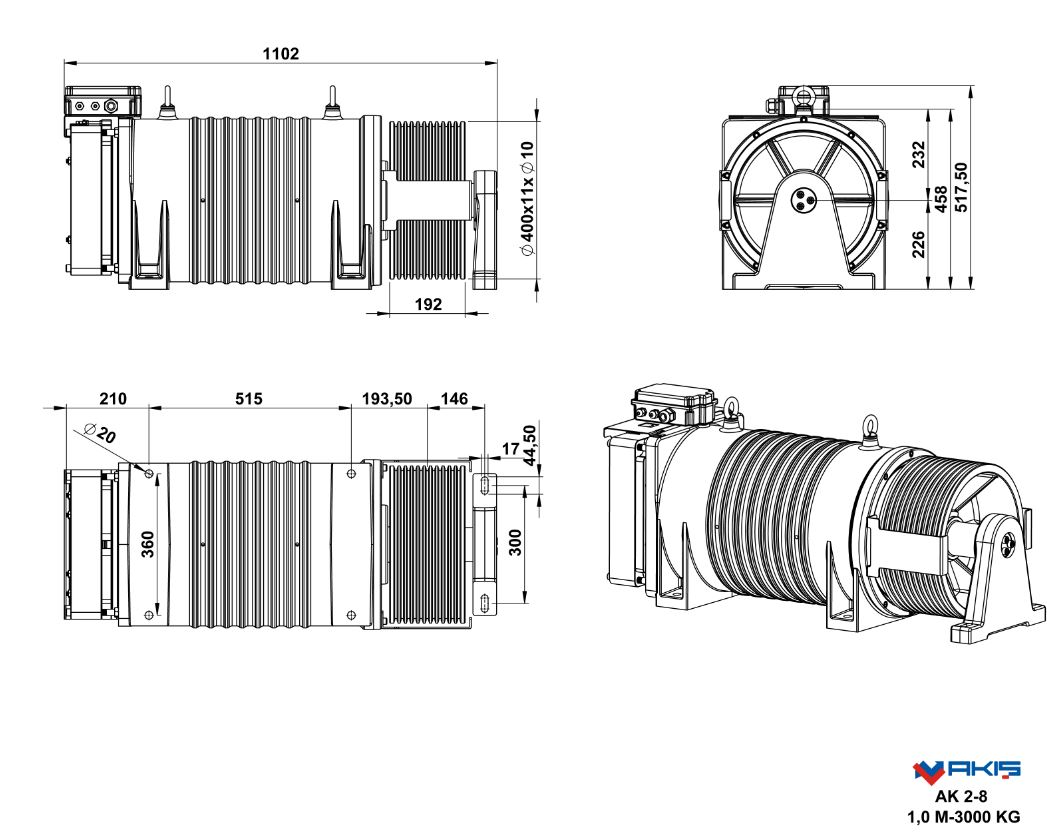 | AK 2-8 | 2,00 | 3000 | 36,7 | 360X15X8 | 86,7 | 20P | 35,37 | 212,2 | 1655,4 |